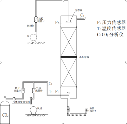 基于上述高效吸附劑開發(fā)相應(yīng)的裝備和工藝,期望獲得吸附劑種類、組合形式、床層中吸附劑的裝填方式以及氣液流量關(guān)系等對吸附效果、傳質(zhì)動力學(xué)參數(shù)的影響規(guī)律。通過自主研發(fā)設(shè)計吸收塔,考察吸收塔中不同吸附劑、不同吸附劑的組合形式、裝填量及裝填方式、吸收劑用量等情況下,對溶質(zhì)的吸收凈化效果以及吸收劑在填料中的流動性能。針對特定的吸附質(zhì),給出較為優(yōu)化的吸收工藝。